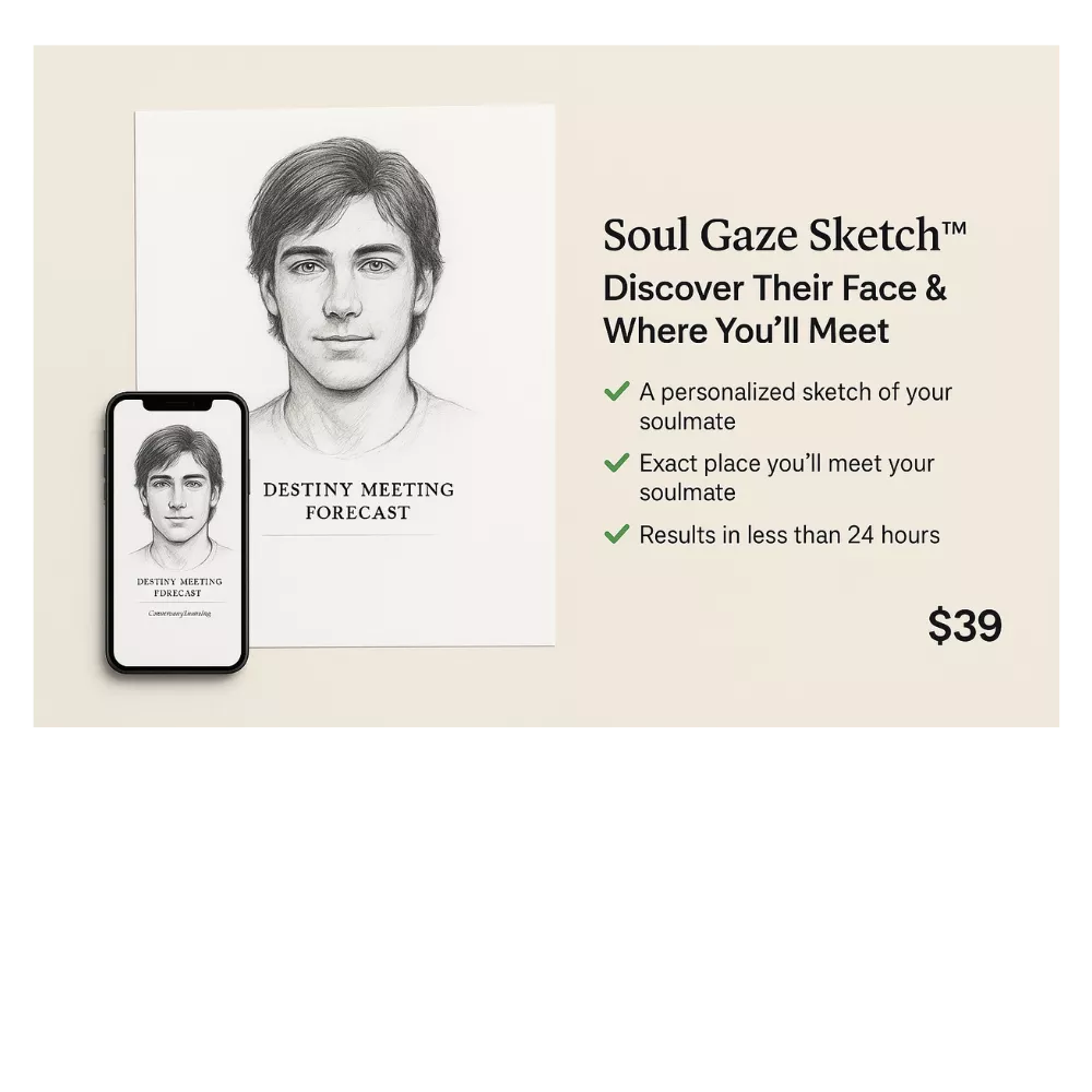 This isn’t just a drawing—it’s a sacred glimpse into your romantic destiny. Within just 24 hours, you’ll receive a personalized Soul Gaze sketch and a prophetic meeting location, delivered with stunning clarity.